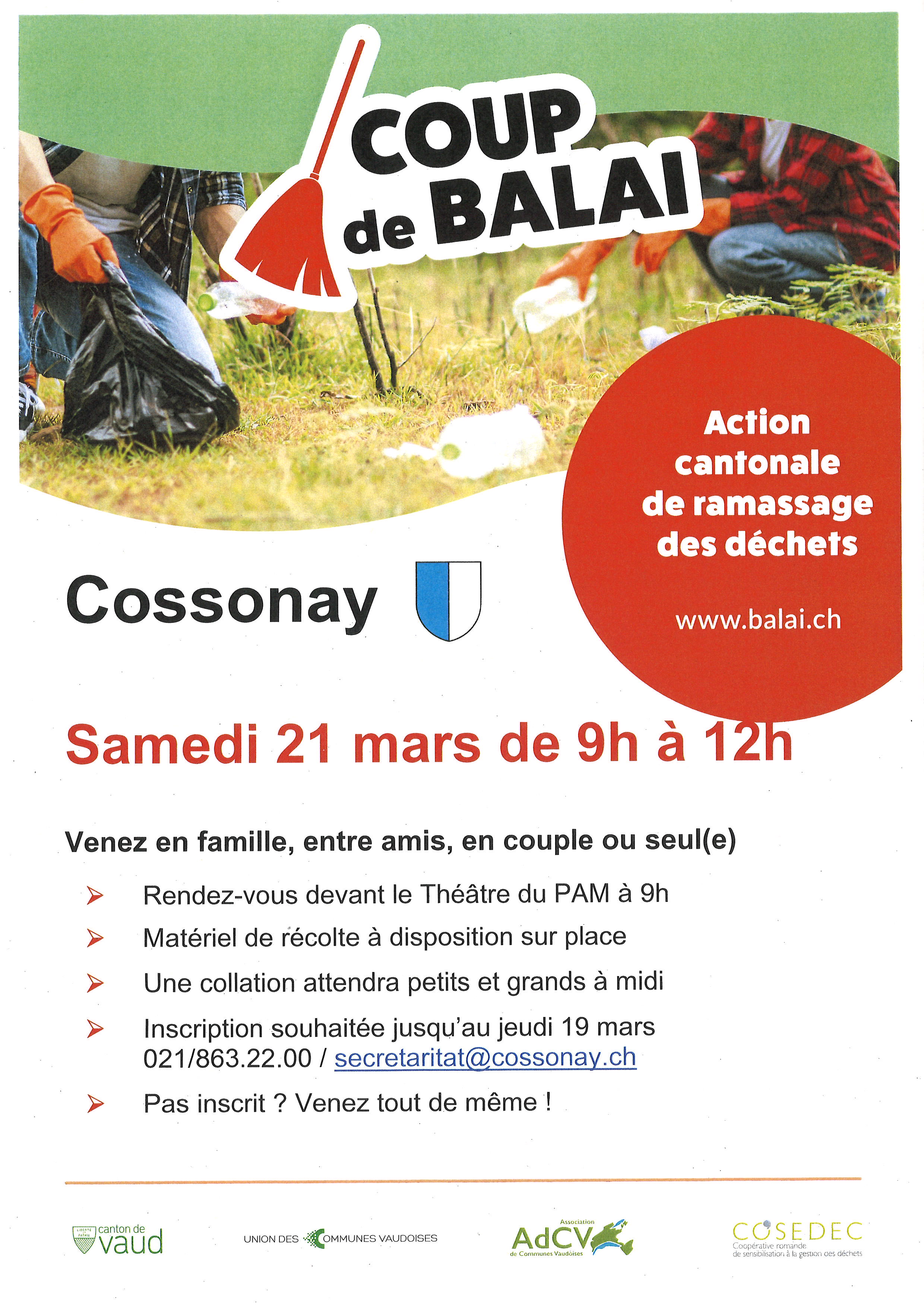 La Commune de Cossonay organise une nouvelle journée "Coup de balai", le samedi 21 mars prochain.